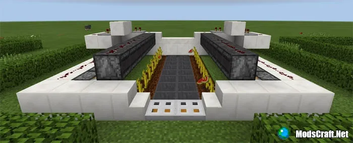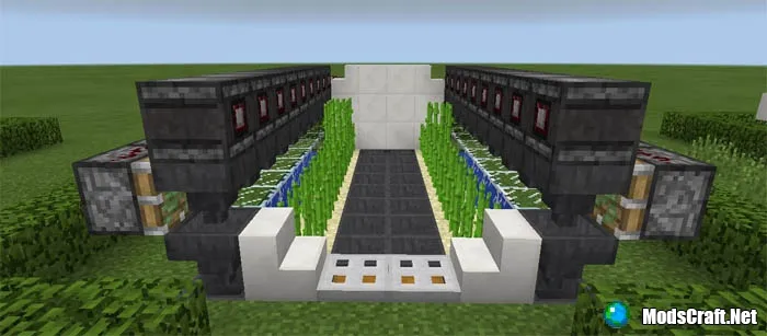Вот автоматическая ферма, созданная с использованием блоков наблюдателей, поршней, воронок и некоторых других элементов Редстоуна.