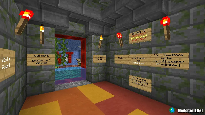 На карте BeatBox64 вы сможете весело провести время и наслаждаться музыкой или же наслаждаться зрелищем работы Редстоун механизмов, которые реализованы на данной карте. Когда вы войдёте впервые в мир, вы услышите приятную музыку, которая будет периодически повторятся. Но самое главное, что в одной из комнат карты, вы сможете сами выстраивать ноты музыкально воспроизведения BeatBox.