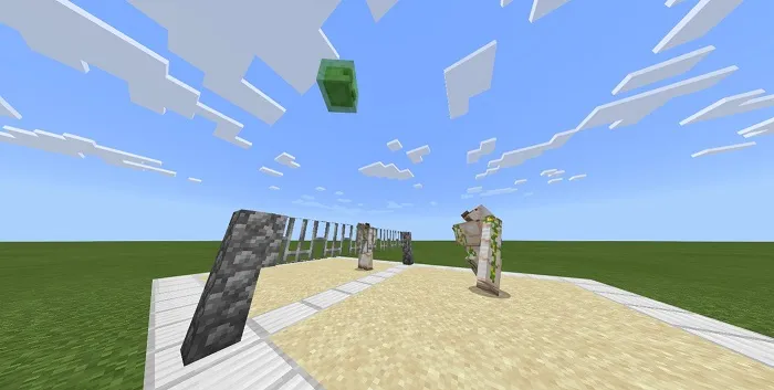 На карте «Iron Golem Volleyball» вы сможете понаблюдать за двумя Железными големами, которые играют в волейбол, используя в качестве мяча слизь. Не волнуйтесь, слизь имеет бесконечное здоровье.
