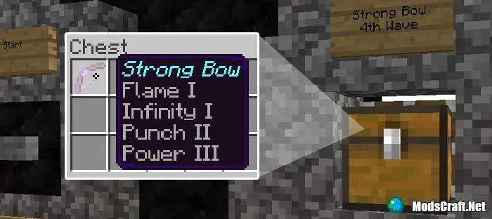 Возьмите лук и стрелы из сундука, после чего нажмите на кнопку, чтобы начать волну зомби. Убейте всех зомби, прежде чем они захватят базу. Свой прогресс вы сможетеувидеть при просмотре редстоун-механизма в конце карты..