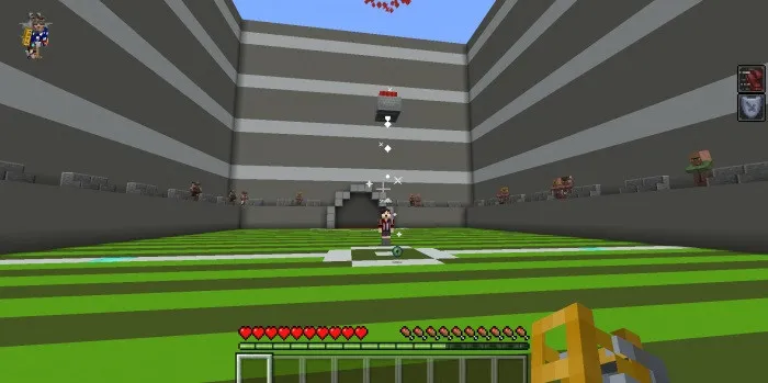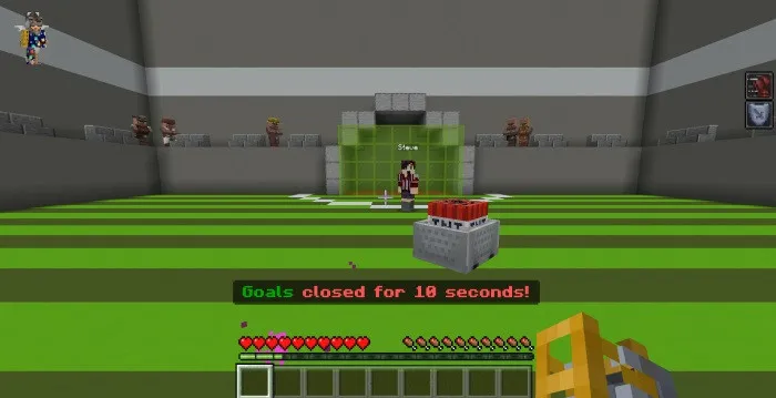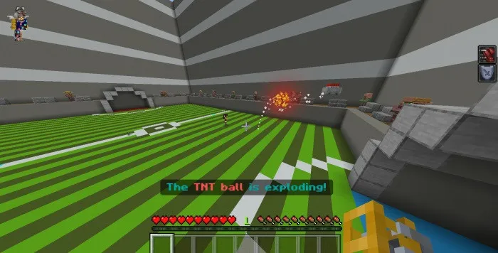 TNT Ball — это весёлая и соревновательная карта для Minecraft Bedrock, в которую вы можете играть с друзьями и забивать голы, чтобы победить. По сути, эта игра представляет собой футбол, только мяч тут не из резины, а из динамита, который может взорваться в любой момент. Постарайтесь долго с ним не копошить, иначе будете подорваны! Используйте бонусы, чтобы вырвать победу из рук вашего противника!
