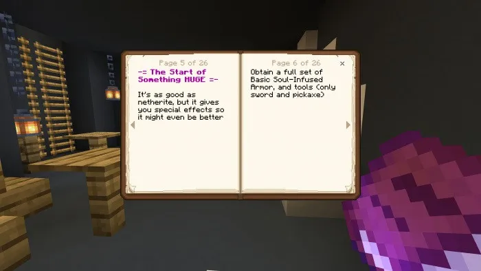 В самом начале книга квестов поможет вам получить стабильный источник кислорода, а затем поможет получить кислородные баллоны, ресурсы, построить базу, убить боссов и т. д. Некоторые квесты даже дают награды по завершении! Если вы потеряете свою книгу заданий, вы всегда можете создать другую, используя всего 1 блок дубовых досок.