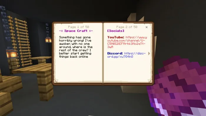 SpaceСraft — это карта для Minecraft, по сюжету которой вы застряли в дальнем космосе на космическом корабле, вы должны использовать меньше кислорода, создавать кислородные баллоны и пытаться выжить, пока не победите последнего босса — Королеву. В книге заданий около 38 квестов, больше пяти новых наборов брони, шесть новых видов оружия, 7 новых боссов, магические заклинания, продвинутая техника и многое другое. Так что это должно быть не просто быстрое прохождение!