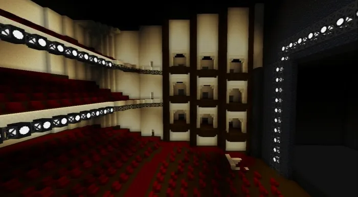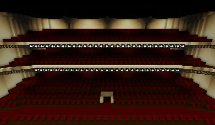 Lightbox Theatre — это карта для Minecraft Bedrock, состоящая из зала с 3 этажами сидений и 3 балконов с видом на пустую сцену — чтобы ваше воображение и творчество сами придумали картину выступления.