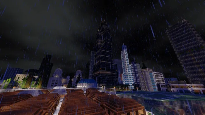 Выше вы могли увидеть некоторые скриншоты города, такие как Большой Синий (это здание такое) и некоторые близлежащие здания, комплекс Evermind, Башни Уиллис и Сеар, Статуя Житебоды, здание компании Galaxy. А ещё скриншоты башен на озере Оршор и в центре города. Больше скриншотов будет добавляться и обновляться по мере развития города! Скорее всего, области будут нанесены на карту и размещены в зависимости от того, где авторы работают.