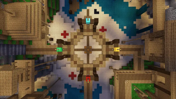 Эта карта — арена для PvP. Вы можете использовать её для многих различных типов PvP, таких как всадники, бои из луков, захват флага или простая королевская битва. Она работает как для соло, так и для парных и квадро-схваток. Не умеете кодить? Не волнуйтесь! Просто дайте всем разноцветные кожаные доспехи, и пусть начнутся игры! Настройка практически не требуется, так как арена уже продумана до мелочей! Её можно использовать как шаблон или как уже работающую карту, но что вы хотите с ней делать — полностью зависит от вас!