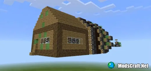 На данной карте вы найдете красивый маленький домик, который реально может летать с помощью редстоуна. На самом деле перед домом расположилась большая машина, которая толкает дом вперед, за что дом и передвигается. Все внутри дома будет передвигаться, в том числе и вы. Это невероятно интересный способ путешествовать!
