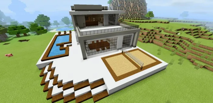 Вам нравятся виллы? А если оснастить виллу с красным камнем? На карте Redstone Villa как раз и случился союз модерн виллы с редстоуном!