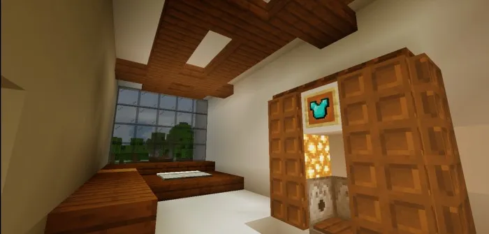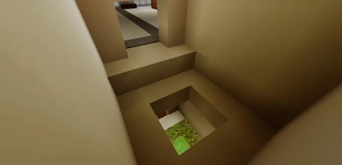 Автор спрятал дверь, чтобы вилла выглядела красиво. Вы можете добавить ещё одну по желанию. Используйте табличку, она покажет вам направление, в котором находится эта вилла.