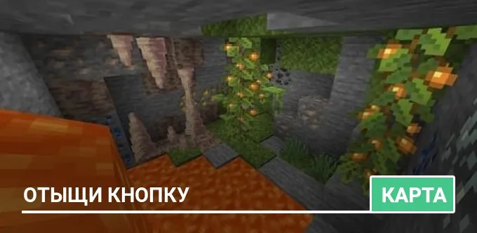 На этой карте было создано десять различных уровней с поиском кнопки. Каждый уровень уникален, есть уровень с деревней, акватиком, храмом, пещерами… Сможете ли вы отыскать все кнопки, а также найти все пасхалки?