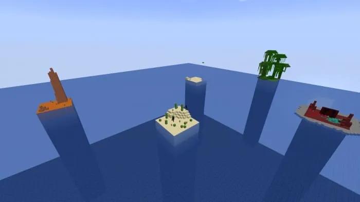 В этом мире все биомы были разделены на отдельные чанки, окружённые океаном, даже Нижний мир… зато Край не был затронут! Ваша задача — выжить в этом суровом мире и победить дракона Края. Это не должно быть слишком сложно. Так что готовьтесь к приключениям!