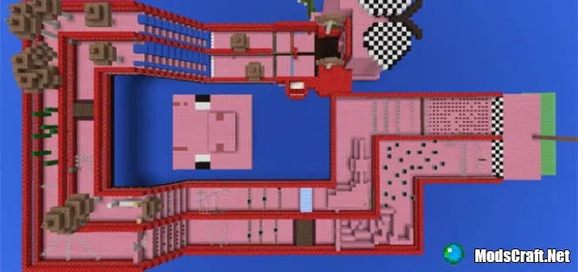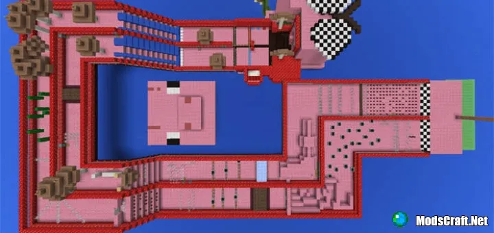 Карта рассчитана для игры до четырех игроков. Возьмите из сундука броню, удочку с морковкой, седло и яйцо спауна свиньи. Наденьте броню, а затем создайте свинью с помощью яйца спауна. Поместите седло на свинью и воспользуйтесь удочкой с морковкой, чтобы управлять направлением движения свиньи.