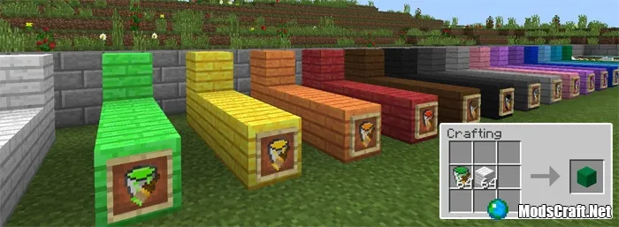 Все шерстяные блоки были заменены на цветные деревянные доски. Однако, это просто текстуры, которые были заменены. Блоки имеют все те же свойства, что и шерстяные блоки (звуки и т.д).