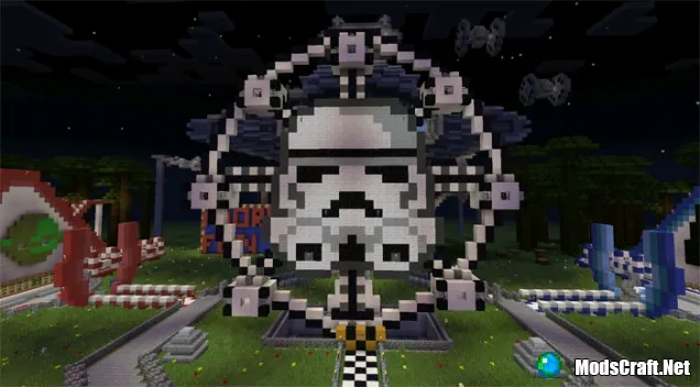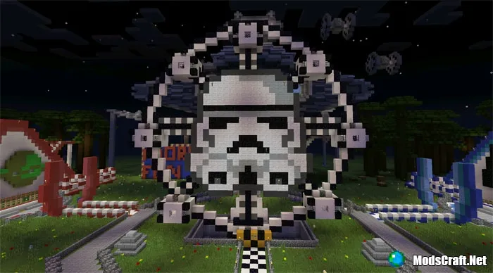 Карта Star Wars Theme Park является удивительной картой для Minecraft PE, особенно если вы является большим поклонником Звёздных Войн. Есть много интересных построек, которые удивят вас. Всё начинается от американских горок и заканчивается мини-играми. Дизайн карты выполнен невероятно качественно, предлагаем вам посмотреть пару скриншотов карты ниже, а лучше скачать карту самому и посмотреть её самому =)