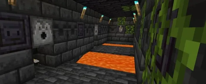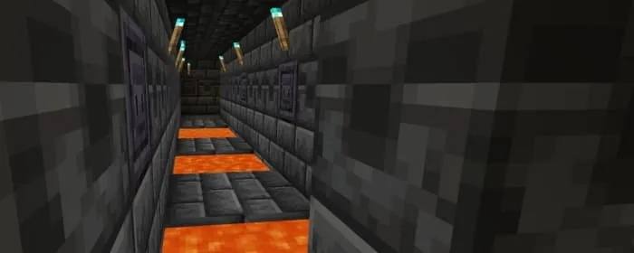 - Этап 2: Не известная заброшенная структура. В самой структуре есть лавовые участки и ловушки, когда вы пройдëте нужно нажать на рычаг, вернувшись в начало паркура можно заметить что исчезла стена туда нужно пройти и открыть ещё один рычаг и тогда откроется 3 этап.