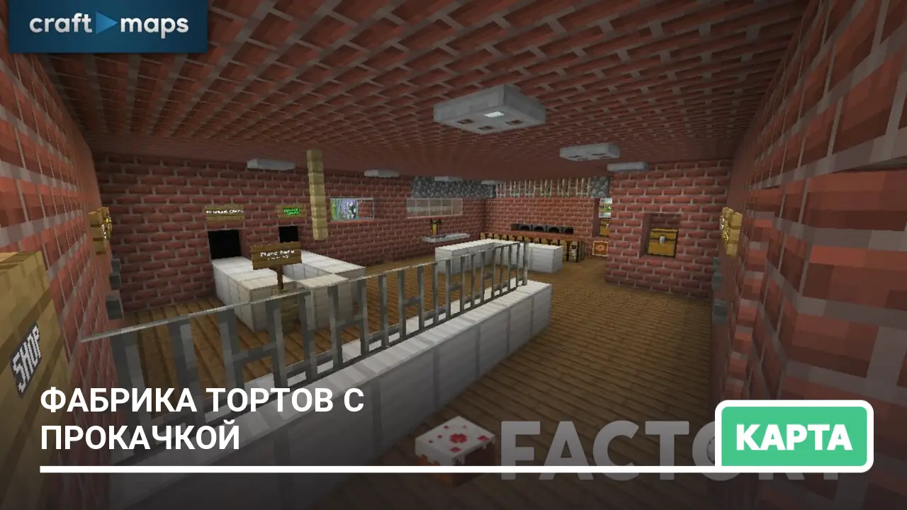 На карте CraftMaps: CakeFactory вы станете пекарем, где нужно принимать заказы, готовить торты и улучшать свою фабрику…