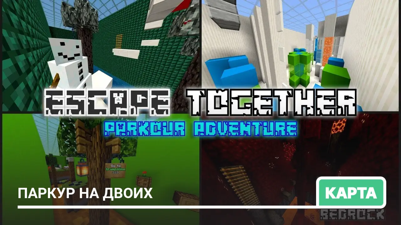 На этой карте создано 10 уровней паркура с разной сложностью и весёлыми испытаниями, что отлично подойдёт для игры в одиночку или с другом…