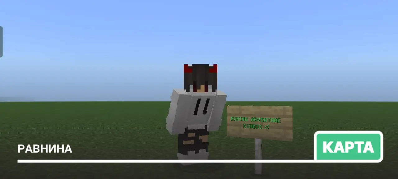 Эта карта находка для строителей, ведь вместо скучного суперплоского мира вас ждёт огромная зелёная равнина с деревьями и деревней поблизости…