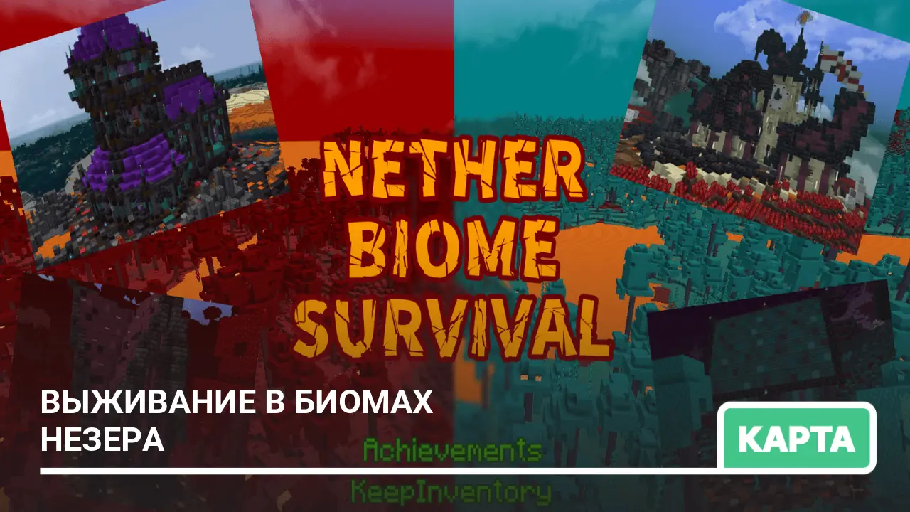 Карта предлагает выживание в аду с сохранением инвентаря и достижениями, где предстоит изучить все биомы и начни с готовой базы…