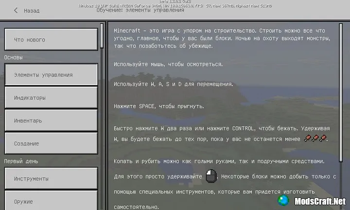 С обновлением Майнкрафт 1.2 в игре стало доступно обучение, в котором можно узнать о многих элементах игры, что прежде всего полезно для новичков.