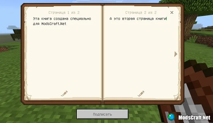 Книгу с пером обычно используют при создании карт на прохождение. В отличие от Java Edition, в новой версии игры МКПЕ 1.2 в окне интерфейса книги можно видеть сразу две страницы!