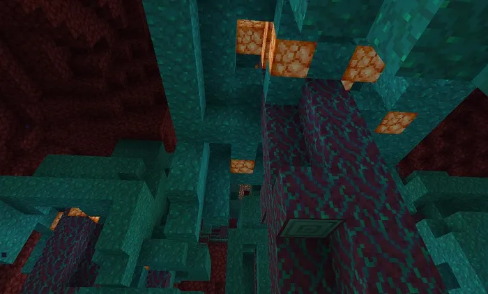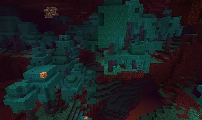 В этом биоме, как и в Багровом Лесу, можно найти новый источник света — Shroomlight!