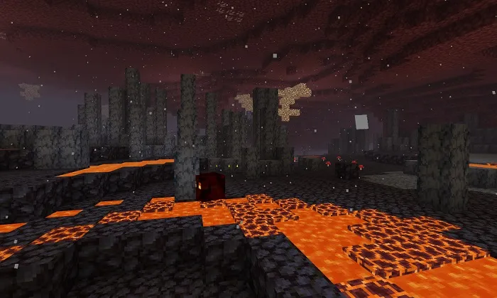 Базальтовые дельты — новый биом в Нижнем мире, окутанный частицами белого пепла. Лавовые кубы теперь появляются в этом биоме и здесь же можно найти чернокамень в большом количестве.