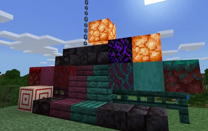 В «Обновлении Незера» появилось и много новых блоков, часть которых появляются в мире случайно, другие необходимо будет скрафтить. На скриншоте ниже можно увидеть некоторые новые блоки.
