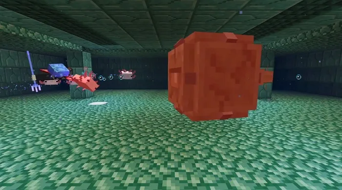Аксолотли миролюбивые существа, но нападают на утопленников, стражей, древних стражей и рыб. Кроме этого, их можно приручать и они будут защищать!