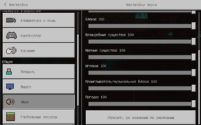 • Меню настроек звуков теперь содержит дополнительные опции для детальной звуковой настройки игры. Теперь вы можете менять громкость музыкальных блоков, мобов, погоды и т.д.