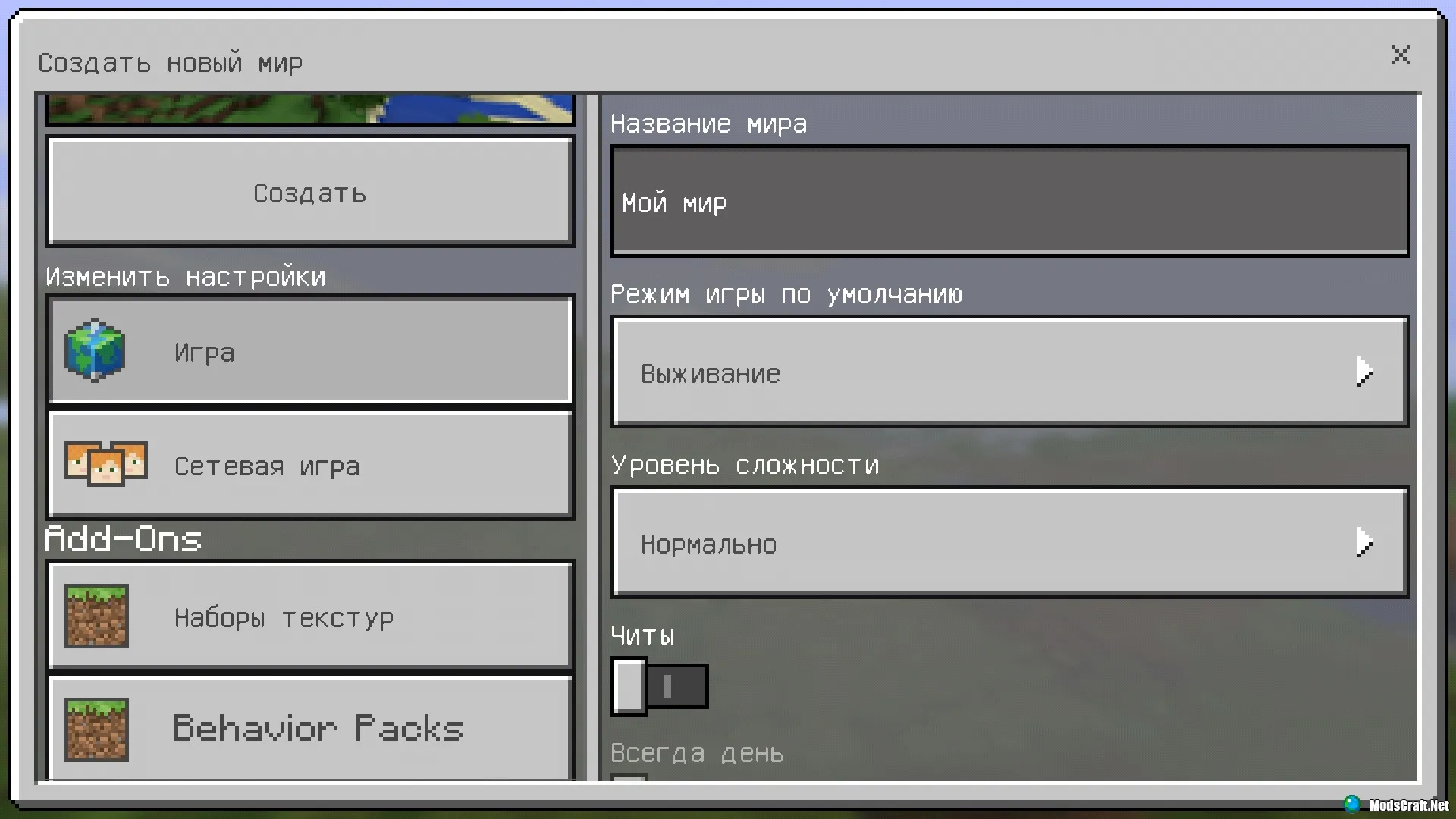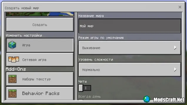 В новой версии Майнкрафт Покет Эдишн 0.16.0 был частично обновлён интерфейс. Теперь экран создания миров выглядит совсем иначе и приятнее. Появилось больше возможностей, как например читы, которые включат в игре команды. Также теперь можно включать текстуры для определённых миров, что кстати очень удобно!