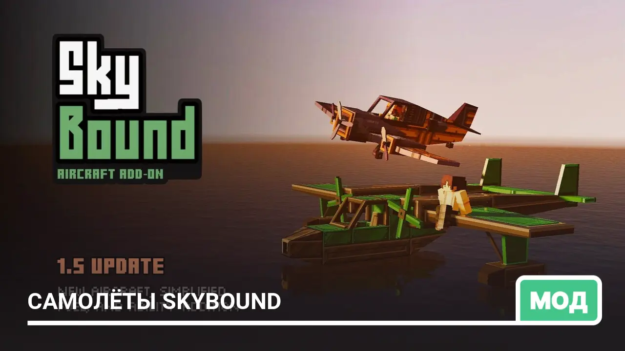 Мод добавляет самолёты Skywand и Naval, которые крафтятся из деталей и летают на угле или древесном угле…