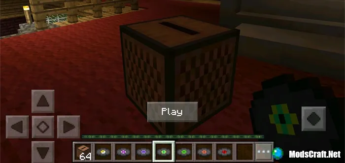 Всего доступно 12 пластинок, которые проигрывают разные песни. Сам мод работает с MCPE не ниже 1.0.4.1!