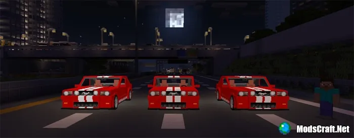 Мод Sports Car: Ford Mustang добавляет в Minecraft Pocket Edition реалистичную машину Ford Mustang, которую можно использовать для гонок! Это одни из лучших модов на машину для МКПЕ.