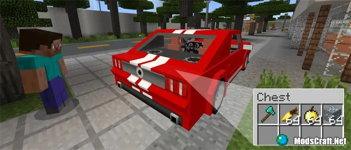 Дизайн и интерьер машины очень схожи с оригинальным Мустангом. Это один из самых реалистичных автомобилей для MCPE, который мы видели!