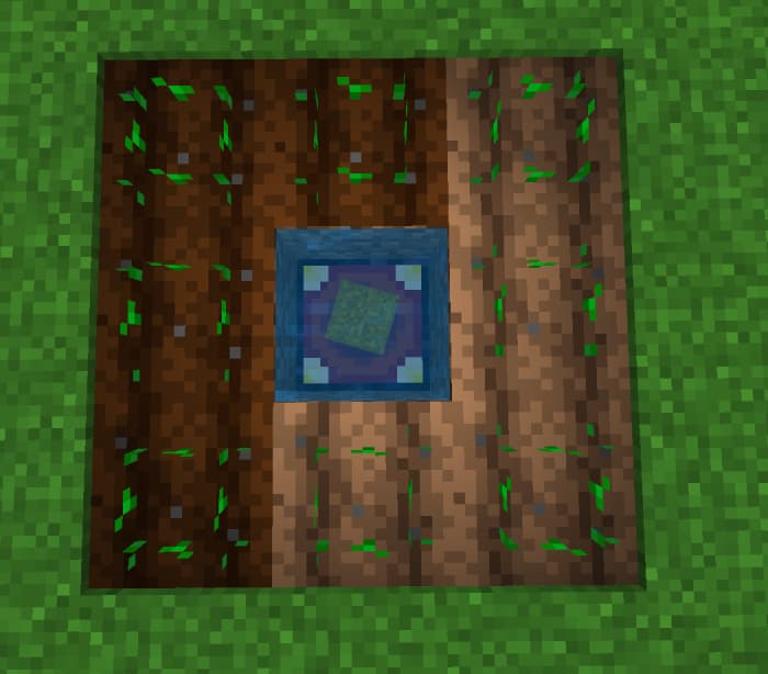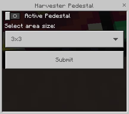 - Чтобы блок работал, понадобится мотыга в инвентаре пьедестала и сундук над ним.
