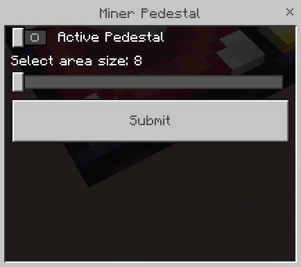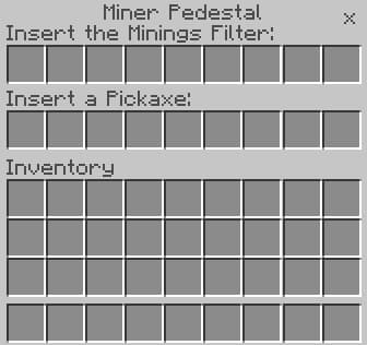 - Чтобы он работал, в инвентаре пьедестала должны быть фильтр для майнинга и кирка.