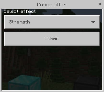 Для работы блока необходимо установить фильтр зелий с выбранным эффектом, указать имя игрока и задать время действия эффекта.