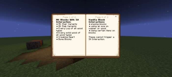 Иногда нужно просто остановиться и перевести дух. Take A Seat — это мод, который добавляет в Minecraft возможность сидеть. Теперь ты можешь сесть на ступеньки, полублоки и бревна, просто кликнув по ним. Без экспериментальных настроек, без конфликтов с другими дополнениями — всё просто и удобно. Мод отлично подойдёт для создания уютных пространств, кафе, ролевых серверов или просто для красоты. Идеальное небольшое улучшение для более живого и реалистичного мира.