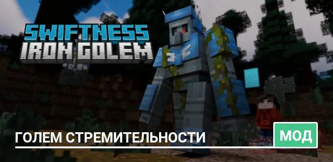 Если ты уже успел посмотреть «Minecraft в кино», то наверняка заметил знакомого, но необычного героя — Голема в сапогах. Именно эта сцена вдохновила мод Swiftness Iron Golem, который добавляет в игру прокачанную версию Железного голема, оснащённого Сапогами стремительности.