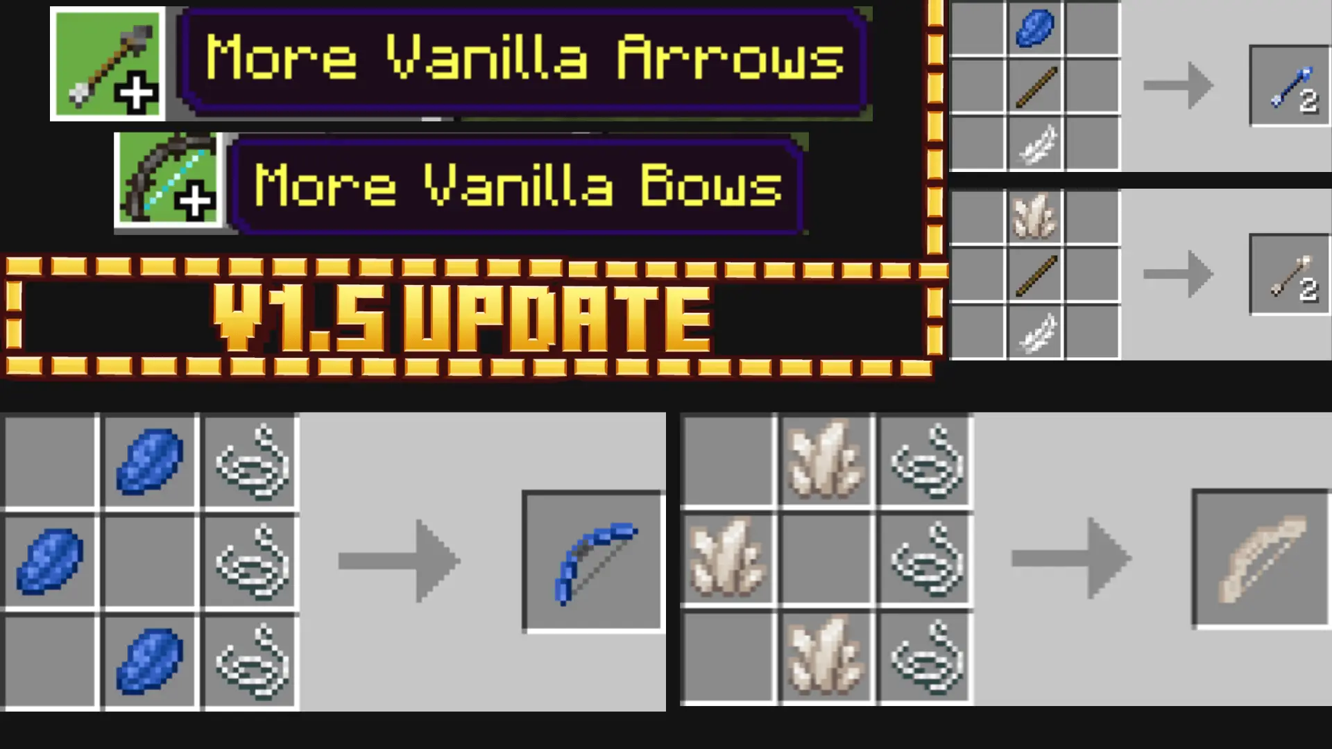 More Vanilla Bows+ расширяет боевую часть Майнкрафт, не выходя за рамки ванильных ресурсов. Он добавляет 9 новых луков, каждый из которых создаётся из уже знакомых материалов, таких как железо, золото, редстоун и другие. При этом каждый лук имеет свою уникальную особенность: кто-то бьёт быстрее, кто-то точнее, а кто-то наносит больше урона.