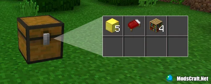 Затем разместите клонированный блок на землю и откройте интерфейс инвентаря сундука. Он будет содержать те же предметы, что и предыдущий сундук.
