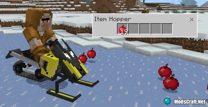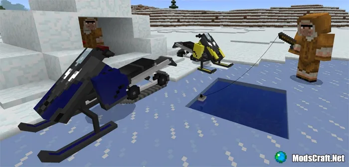 Мод Snowmobile понравится тем, кто часто путешествует по снежным биомам в Minecraft Pocket Edition, ведь с ним в игре появится новый транспорт - снегоход! Это довольно быстрое транспортное средство, которое также имеет и приятный дизайн.