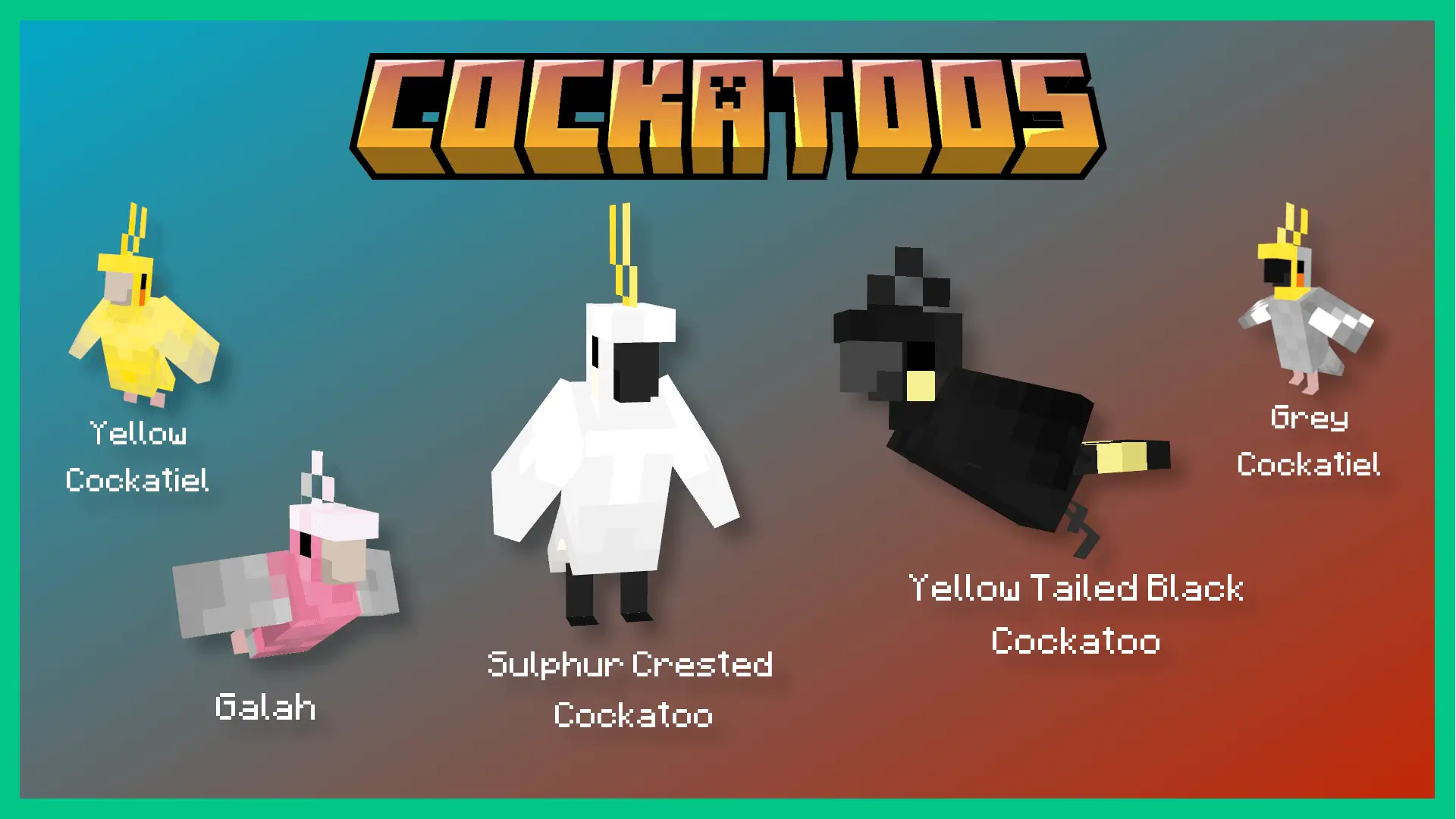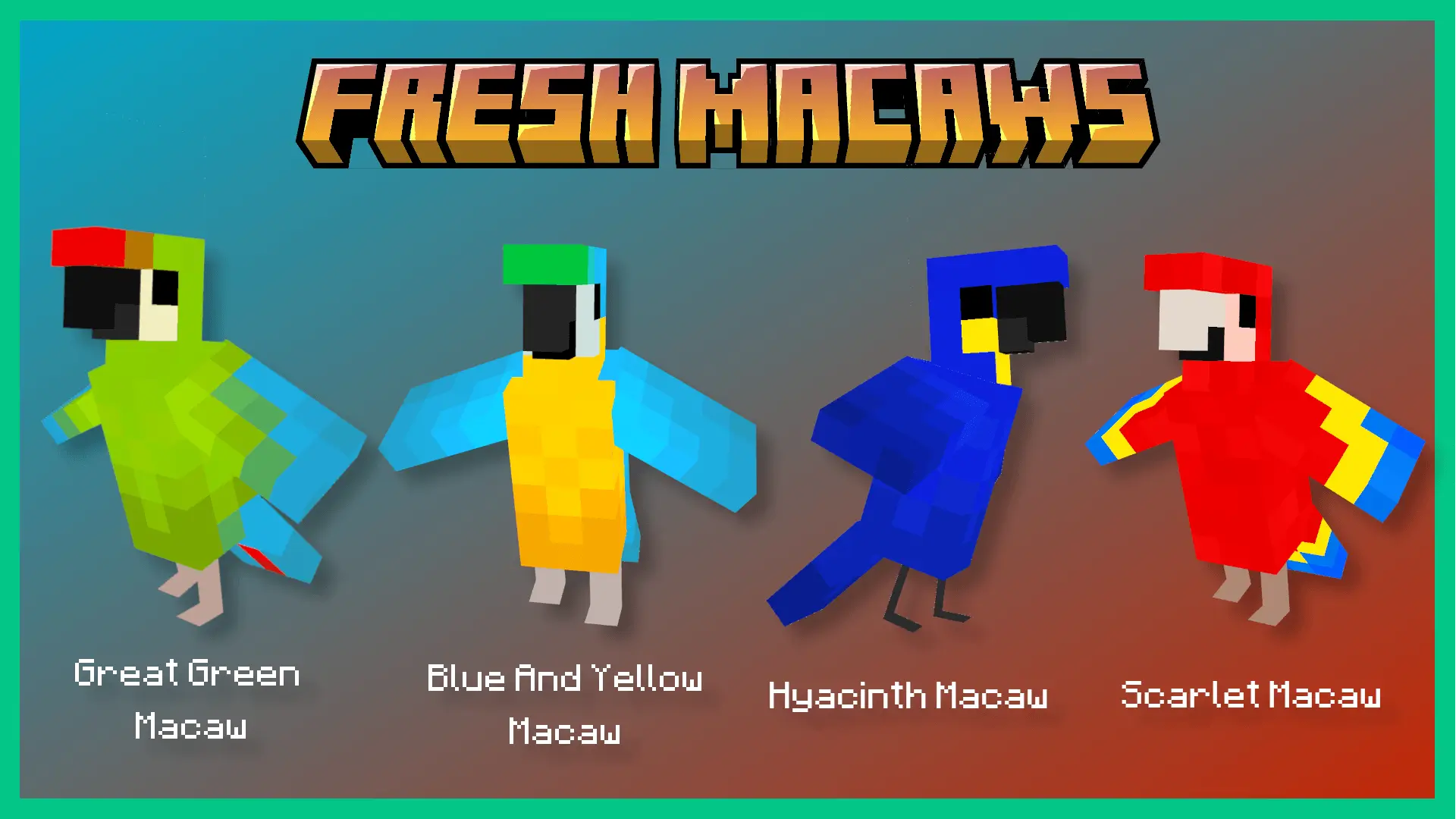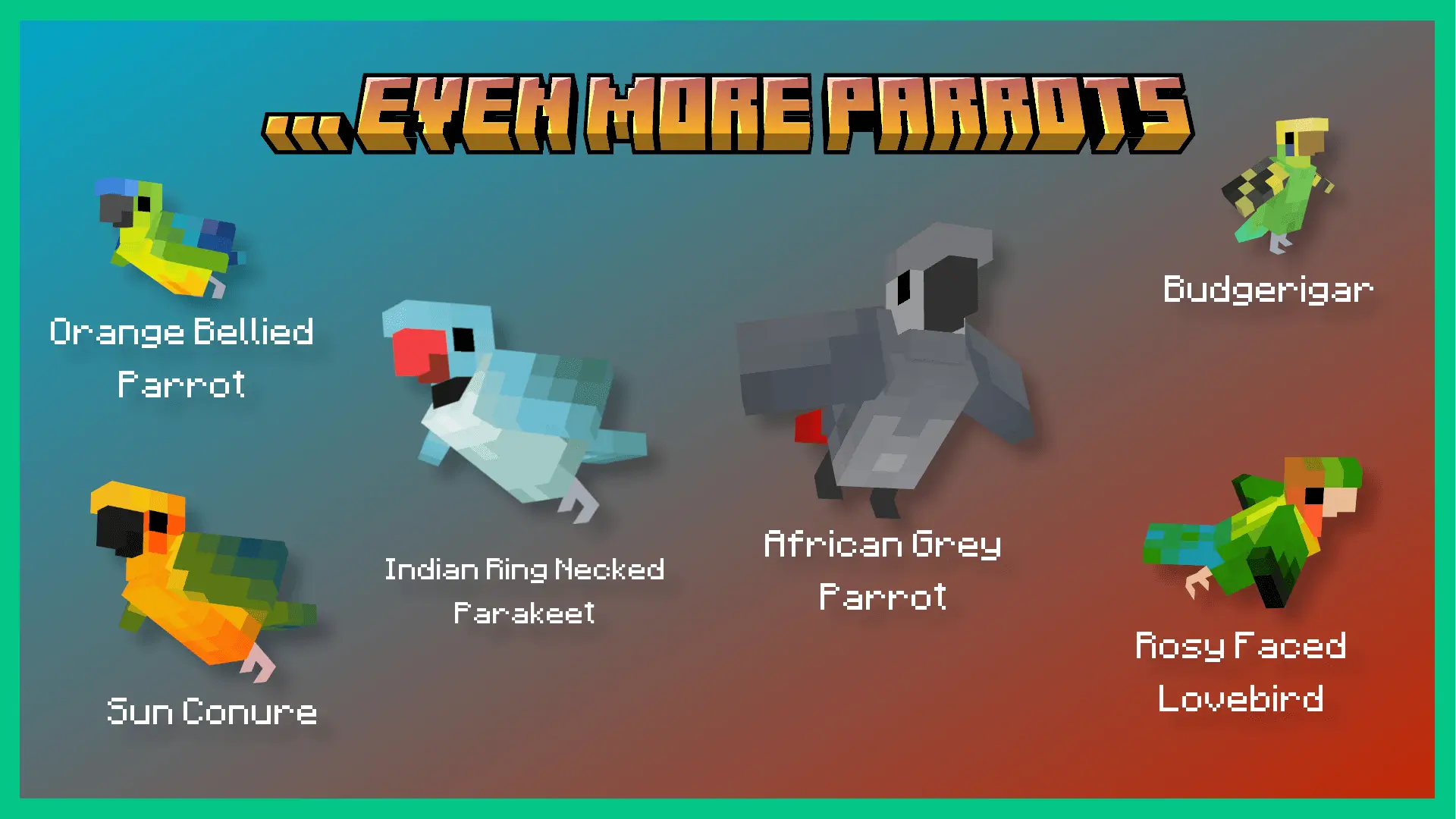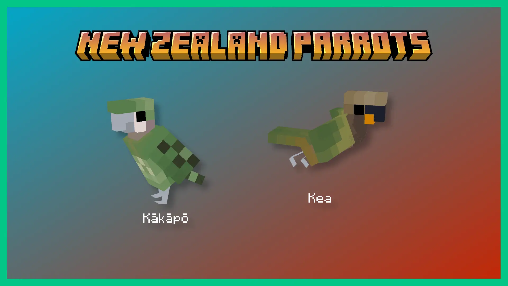 С модом Parrots O’ Plenty в мире Minecraft можно встретить редкие и исчезающие виды, такие как какапо или кеа, каждая из которых обладает своими уникальными особенностями. Попугаи умеют сбрасывать перья, спать рядом с игроком, а также размножаться при помощи нового блока гнезда.