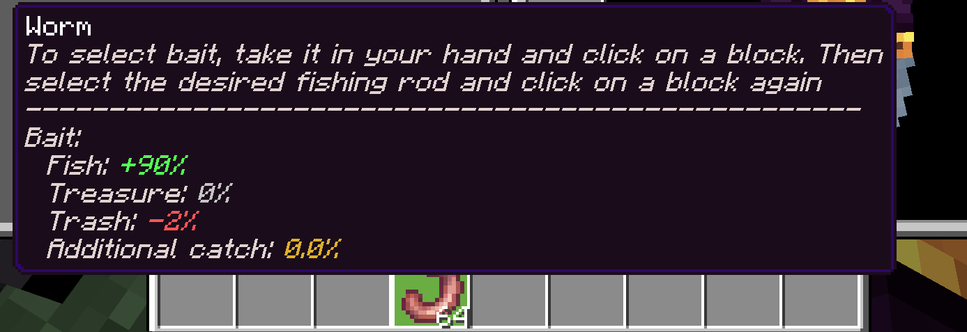 - У удочек теперь есть характеристики, которые влияют на количество наживки и модификаторы для разных видов улова.