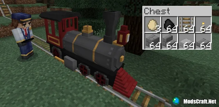 Мод Train добавит в Minecraft Pocket Edition полностью функциональный поезд, который будет ездить на рельсах. Вы можете использовать поезд для собственного перемещения по игровому миру МКПЕ, но поезд также позволяет перевозить ресурсы в специально сундуке. Детализация поезда выглядит очень круто и надеюсь, что в будущем разработчик добавит больше возможностей!