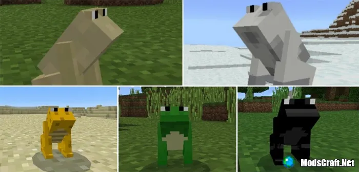Всего есть 7 различных лягушек, каждая из которых спаунится в определенном биоме.