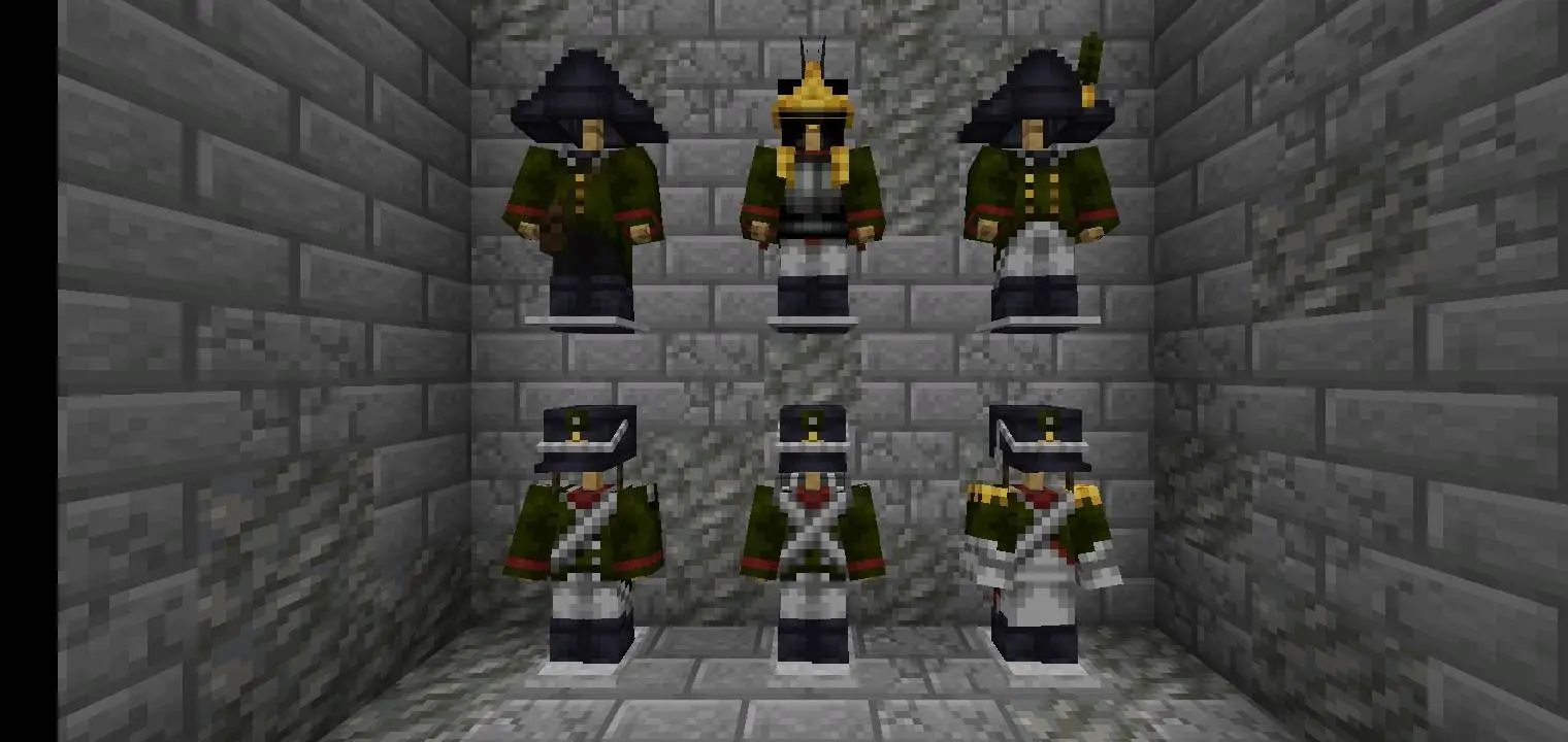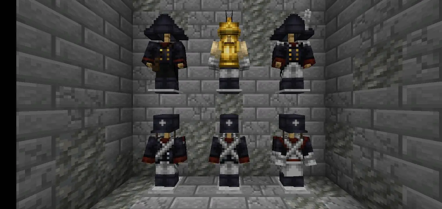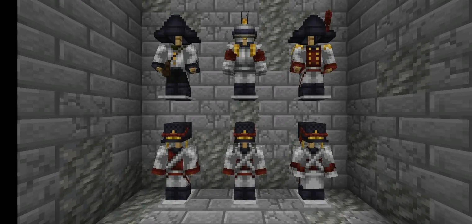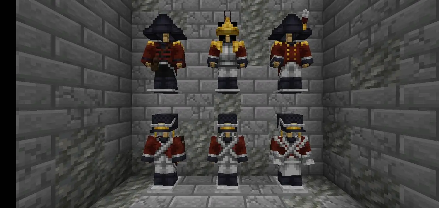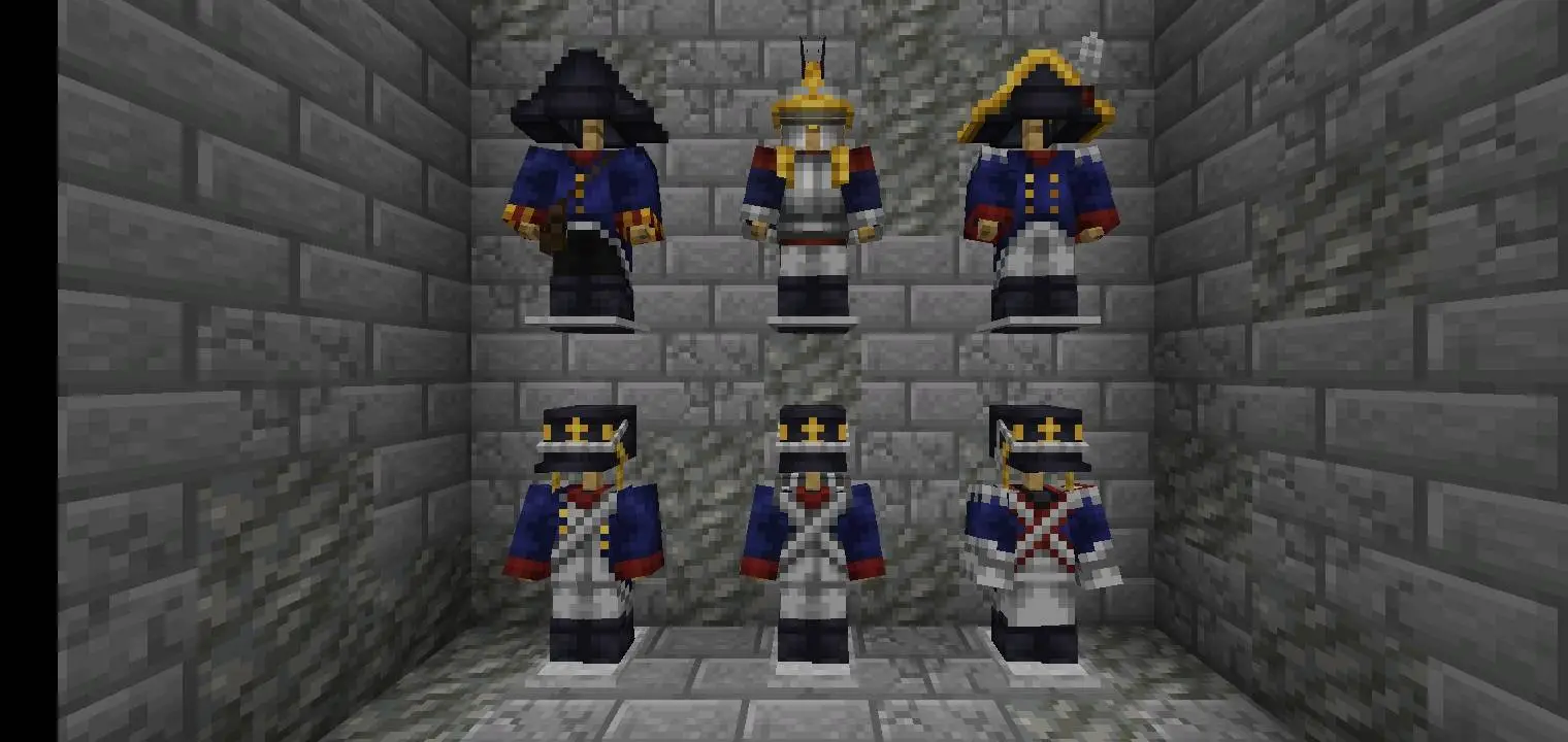 Мод Napoleonic Bedrock переносит вас в мир Наполеоновских войн. Он добавляет униформу и оружие для шести стран, включая Францию и Британию. У каждой страны свои уникальные флаги и 6 типов униформ, а также 5 видов оружия. Присоединяйтесь к стране, используя новые предметы клятвы, и участвуйте в сражениях с остальными странами.