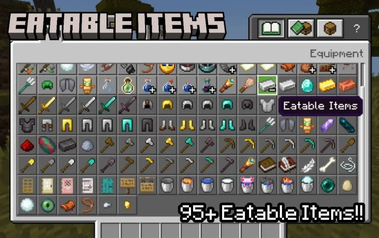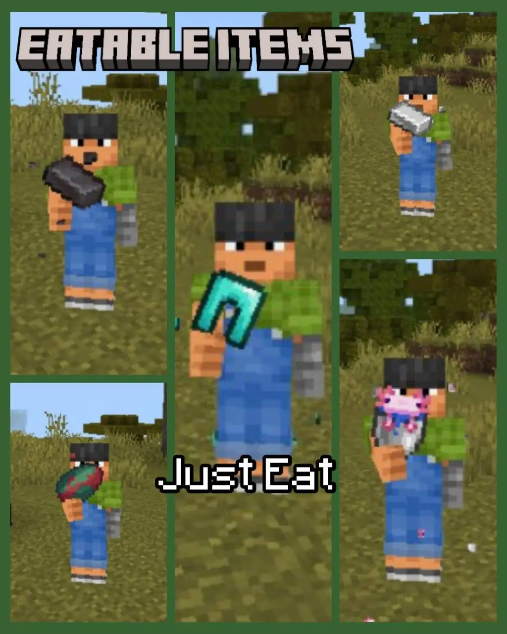 С помощью мода Eatable Items появится возможность съедать броню или оружие. Съесть алмазный нагрудник? Почему бы и нет. Такой подход добавляет весёлых моментов в игру и идеально подходит для розыгрышей друзей или съёмок необычного контента.
