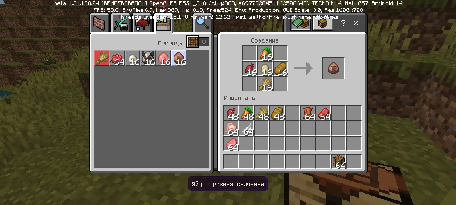 Этот мод добавляет возможность крафтить яйца спауна мобов прямо в режиме выживания. Крафт довольно легкий.